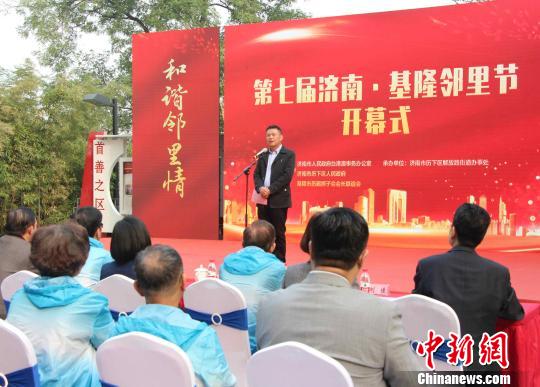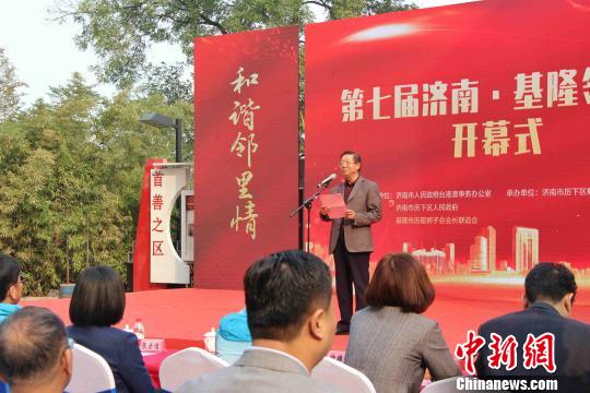 台湾基隆市议会议员俞叁发在“第七届济南·基隆邻里节”上致辞。 赵晓 摄