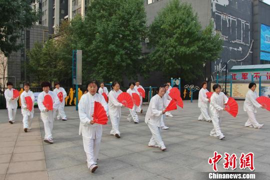 图为历下区居民表演太极拳迎接远道而来的台湾客人。 赵晓 摄