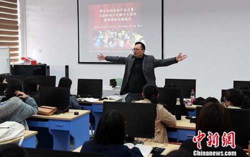 资料图为台湾教师、阳光学院副教授张纹珑博士课堂上声情并茂地讲课,受到学生的喜爱。中新社记者 刘可耕 摄
