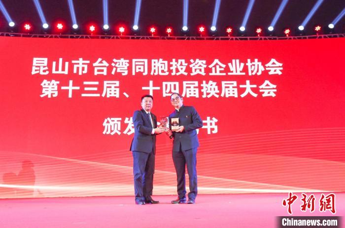 昆山市台湾同胞投资企业协会第十三届、第十四届换届大会22日举行,六丰机械总经理宗绪惠连任会长。 昆山宣传部提供