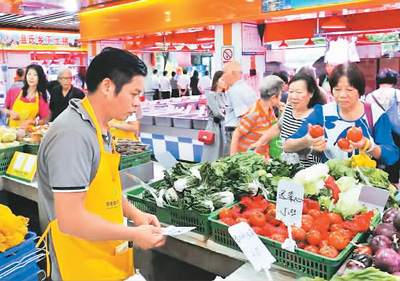 图为广州的粤港澳大湾区“菜篮子”档口。(资料图片)