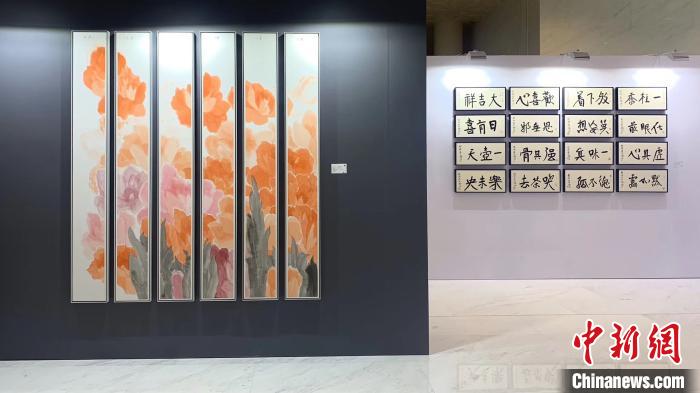 当天展出净耀法师以济世渡人、祈福两岸和平为主要创作内容的多幅书法作品,“期盼让两岸民众感受到吉祥的温暖”。净耀法师近年多次往返两岸弘扬佛法,感受到大陆的蓬勃发展,他说:“大陆兴盛为全球华人带来福祉和裨益,唯望两岸和平祥和,民生得利。”