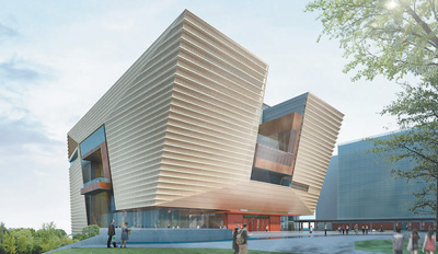为呈现出流光溢彩、行云流水的视觉效果,博物馆外墙镶嵌了3999块曲面铝合金“琉璃瓦”,以独特的肌理和色彩,衬托传统中国文化内敛而华丽的气质。