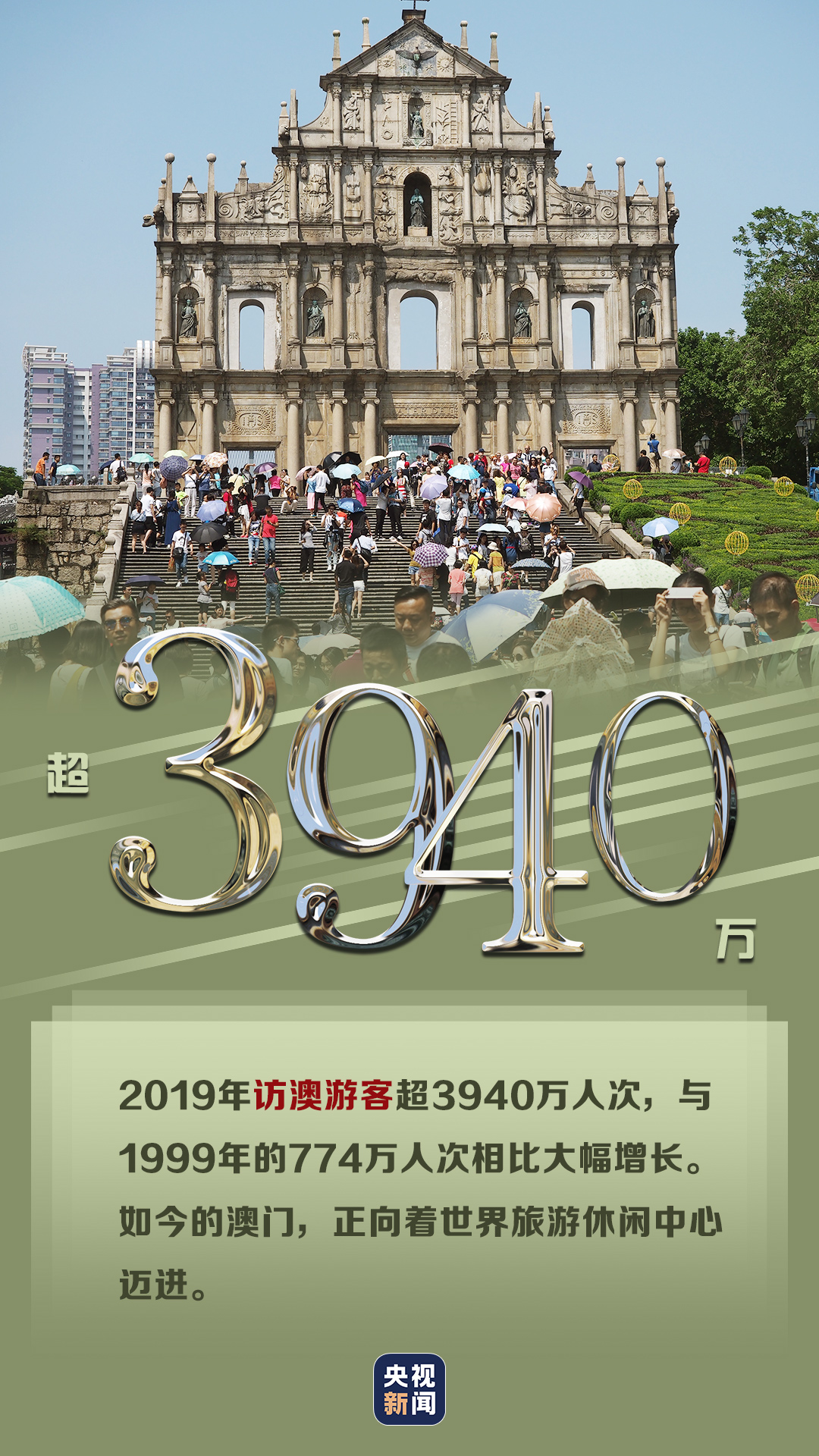 21年前的今天,漂泊多年的澳门回家了!回归以来,“一国两制”成功实践,澳门经历了翻天覆地的变化:社会稳定、经济发展、文化繁荣,澳门老百姓感受到了幸福感。一组数字带你领略澳门的风华正茂↓↓↓