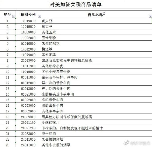 原标题:国务院关税税则委员会发布对原产于美国部分进口商品加征关税公告