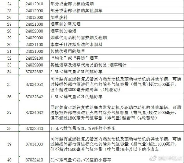 二、对原产于美国的附表所列进口商品,在现行征税方式、适用关税税率基础上加征25%的关税,现行保税、减免税政策不变(本次加征的关税不予减免)。