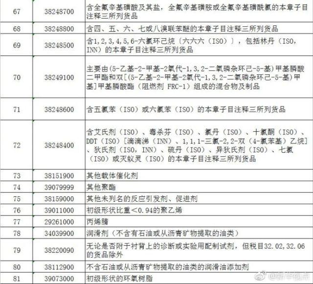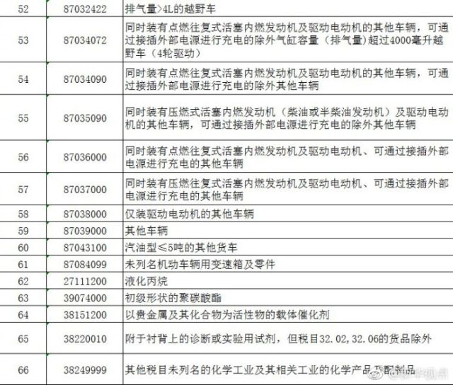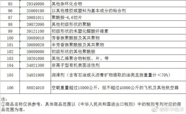一、加征关税的商品为大豆、汽车、化工品等14类106项商品。征税范围详见附表。