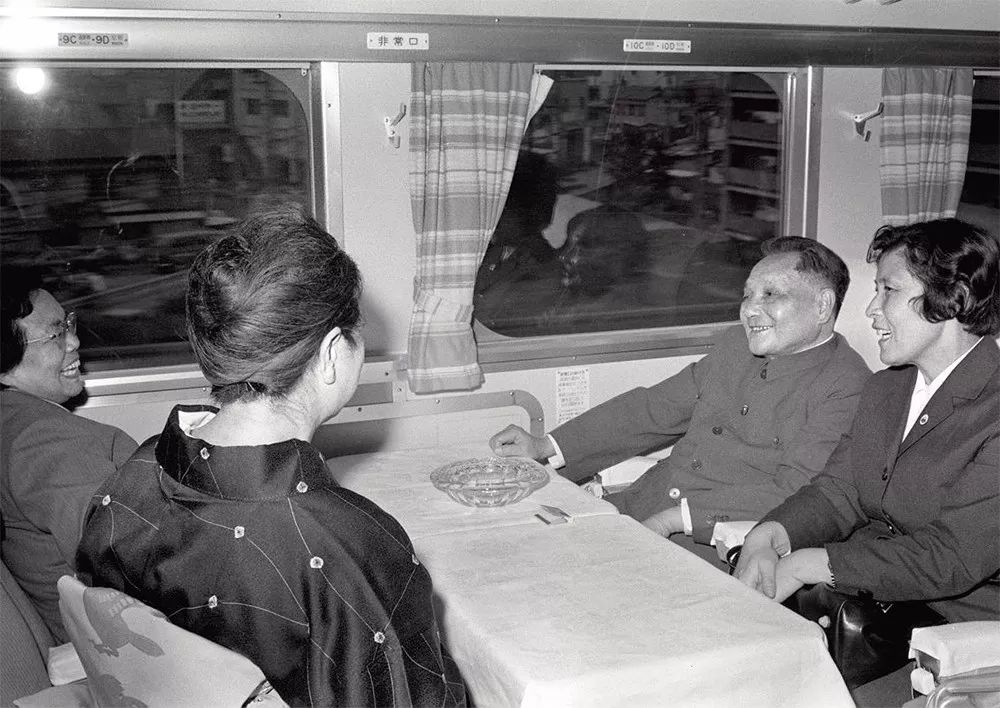 ▲ 1978 年10 月26 日,邓小平离开东京乘新干线超特快列车赴京都访问。这是邓小平和夫人卓琳乘坐“光- 81 号”超特快列车