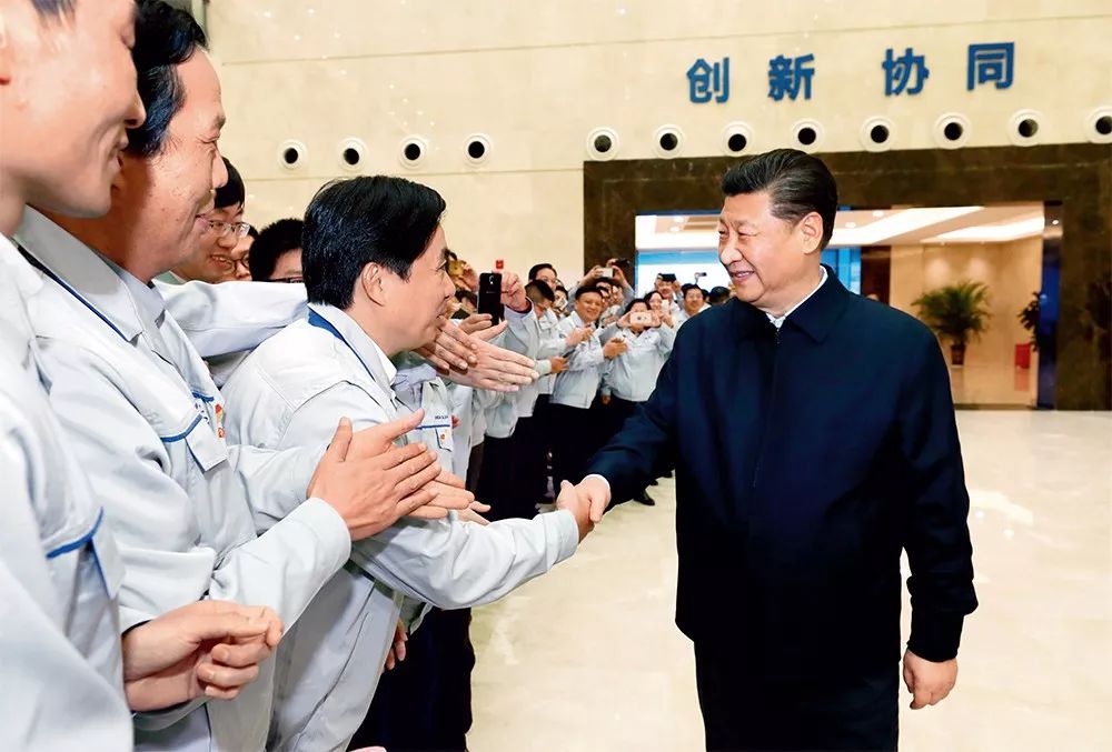 ▲ 2月11日,习近平总书记在成都中电熊猫显示科技有限公司考察时同员工亲切握手 鞠鹏摄