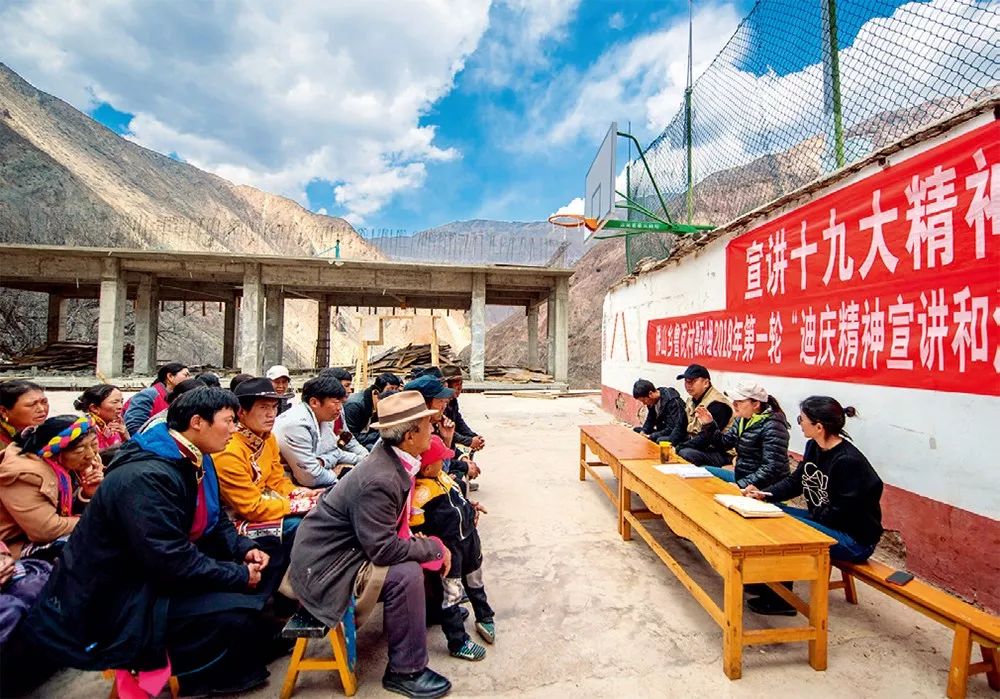 ▲ 云南省迪庆藏族自治州德钦县佛山乡鲁瓦村,藏族干部在宣讲党的政策 胡超摄