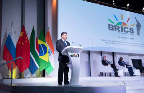 7月25日,国家主席习近平应邀出席在南非约翰内斯堡举行的金砖国家工商论坛,并发表题为《顺应时代潮流实现共同发展》的重要讲话。新华社记者李涛摄
