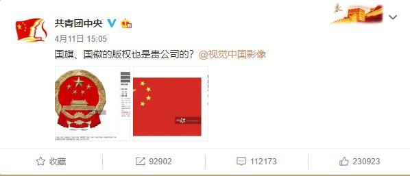 15点后,共青团中央的微博“国旗、国徽的版权也是贵公司的?”使“视觉中国”舆情出现了第一个“高峰”。与此同时,各大知名企业也发现自己的logo和商标被视觉中国贴上了“版权所有”的标签。网民吐槽声不断。