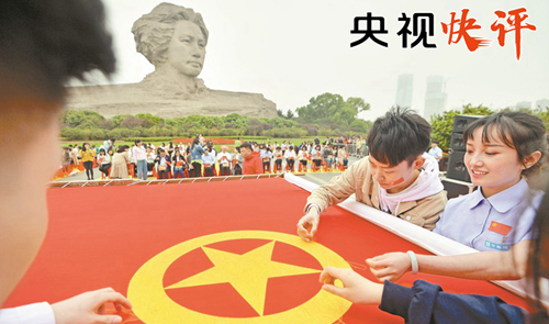 我们纪念五四运动,就是铭记孕育于民族危亡时刻的爱国主义精神,重温追求真理、追求进步的伟大觉醒,致敬在全民族的搏击中培育的永久奋斗的伟大传统。今天,中华民族正迎来伟大复兴重要历史时刻,这一首用血与火谱就的青春之歌,这一面写满赤子忠诚的青春旗帜,在新时代新征程上更要成为激励广大青年接力奋进的强大动力。