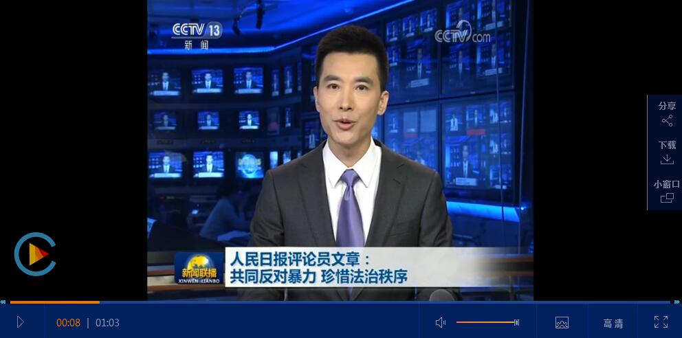 央视网消息(新闻联播):明天(7月21日)出版的人民日报将发表评论员文章,题目是《共同反对暴力 珍惜法治秩序》。