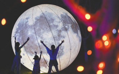 游客在河北省沙河市红石沟现代农业园区夜间举办的“梦幻灯光节”上游玩。新华社记者 牟 宇摄
