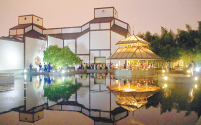 人们在江苏苏州博物馆举行的博物馆奇妙夜开放活动中参观游览。王建康摄(新华社发)