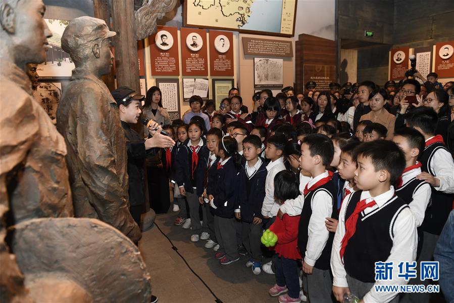 4月5日,在浙江革命烈士纪念馆,小学生代表在朗诵潘心元烈士遗诗《满江红·西望长沙》。当日,杭州市浙江革命烈士纪念馆开展“不忘初心忆先烈——清明节实景宣讲专场活动”,运用讲解员解说、情景剧表演、实景讲述、烈士遗诗遗文诵读、红歌联唱等形式,生动展现烈士为理想信念舍生忘死、浴血奋斗的感人故事。新华社记者黄宗治摄