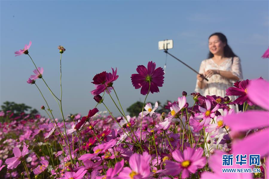 4月5日,游人在海南琼海龙寿洋花海公园里踏青赏花。清明小长假期间,人们纷纷走到户外,踏青赏花,亲近自然。 新华社发(蒙钟德 摄)