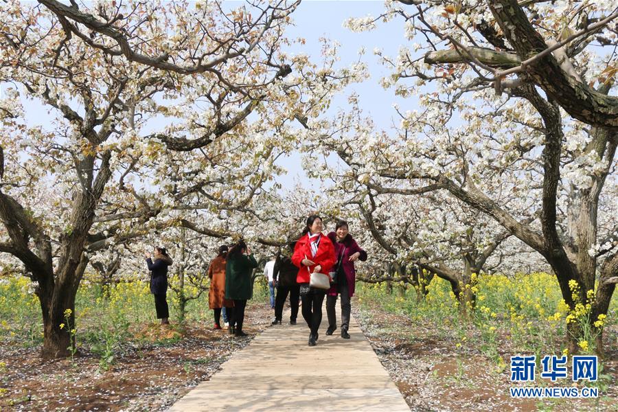 4月5日,游人在江苏省连云港市灌云县观赏梨花。清明小长假期间,人们纷纷走到户外,踏青赏花,亲近自然。 新华社发(吴晨光 摄)