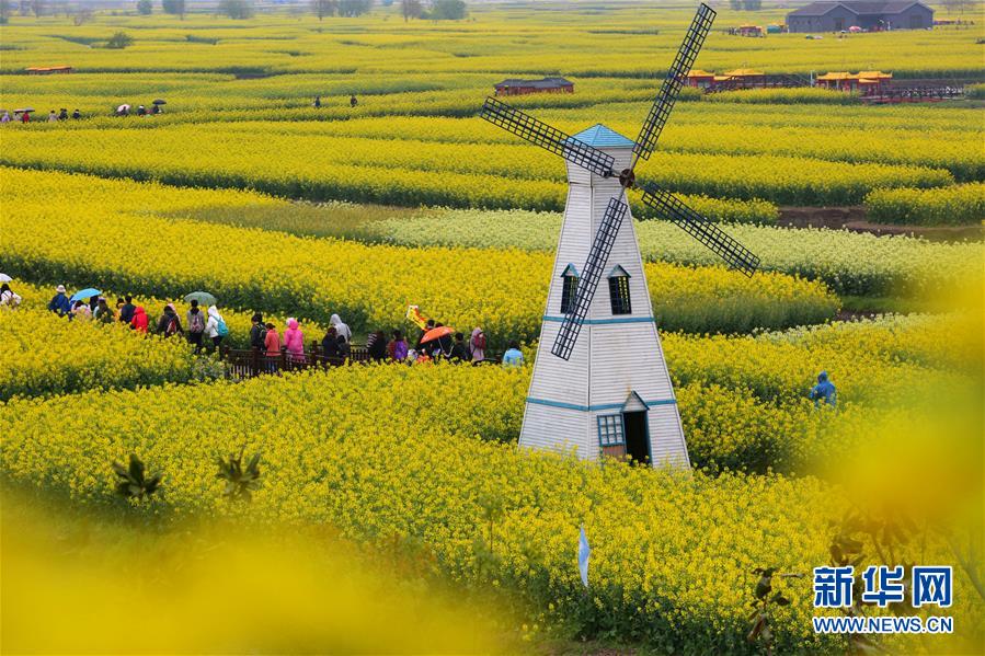 4月5日,游人在江苏省兴化市千垛菜花景区观赏油菜花。清明小长假期间,人们纷纷走到户外,踏青赏花,亲近自然。 新华社发(陈暐 摄)
