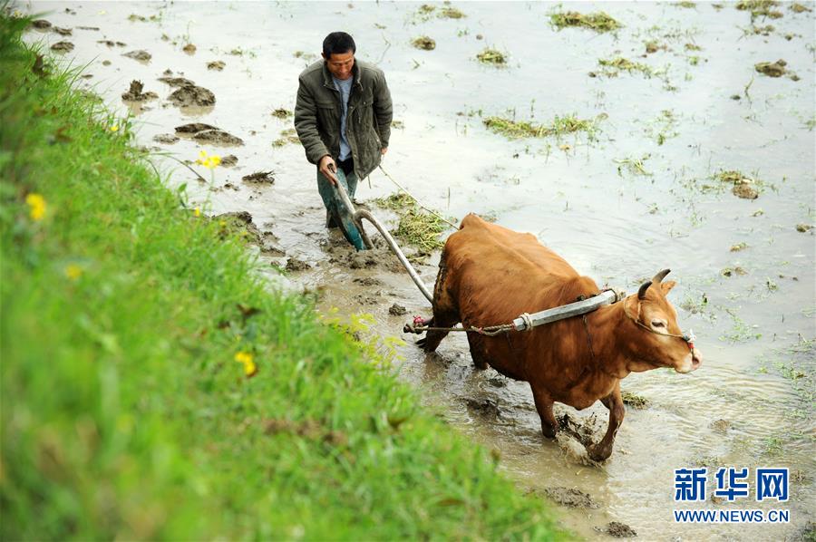 4月6日,贵州省锦屏县固本乡东庄村的农民在耕田。清明时节,贵州省黔东南苗族侗族自治州锦屏县的农民忙着耕田、翻地、搬运农家肥,田间地头一片繁忙景象。 新华社发(杨文斌 摄)