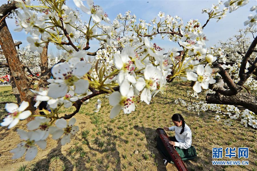 4月8日,一名学生在南开大学梨园春会上弹琴。 当日,“芳华梨园春咏南开”南开大学第二届梨园春会在该校津南校区梨树园举行。本届活动由梨园诗会、踏春游园两个环节组成,现场设置了诗朗诵、飞花令、戏曲、猜谜、投壶等传统文化体验项目,吸引众多师生及市民前来欣赏梨花美景、体验学府文化。新华社发(史淞予 摄)