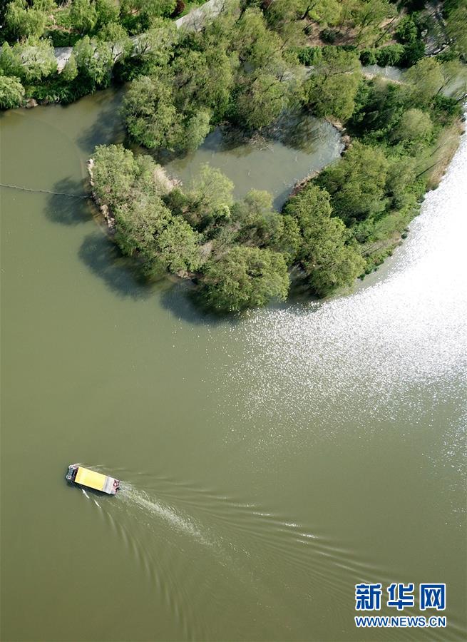 这是4月8日拍摄的济南大明湖景区风景(无人机拍摄)。近日,天气晴朗气温上升,济南大明湖景区春光明媚风景如画,吸引众多市民和游客前来游览。大明湖位于济南市区,湖岸种植有大量的柳树,以“四面荷花三面柳,一城山色半城湖”的风光闻名。新华社记者 徐速绘 摄