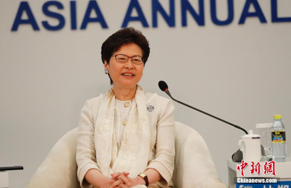 4月9日,博鳌亚洲论坛2018年年会举行“粤港澳大湾区”分论坛,香港特别行政区行政长官林郑月娥出席论坛。中新社记者 杜洋 摄