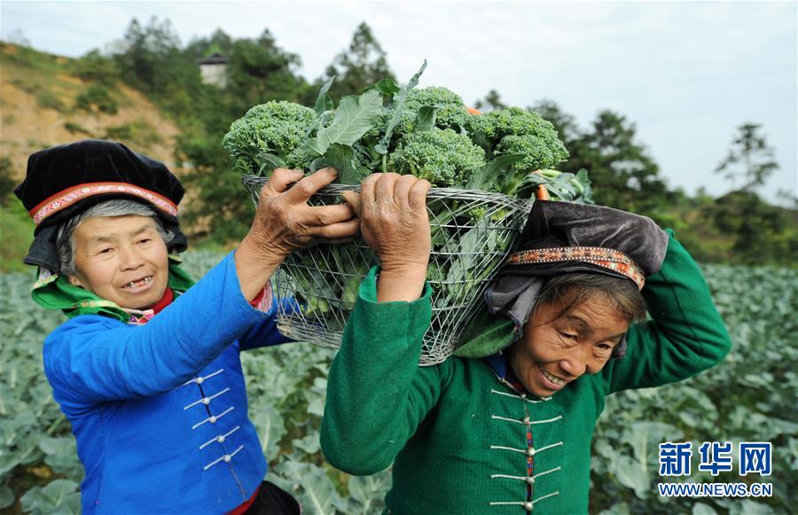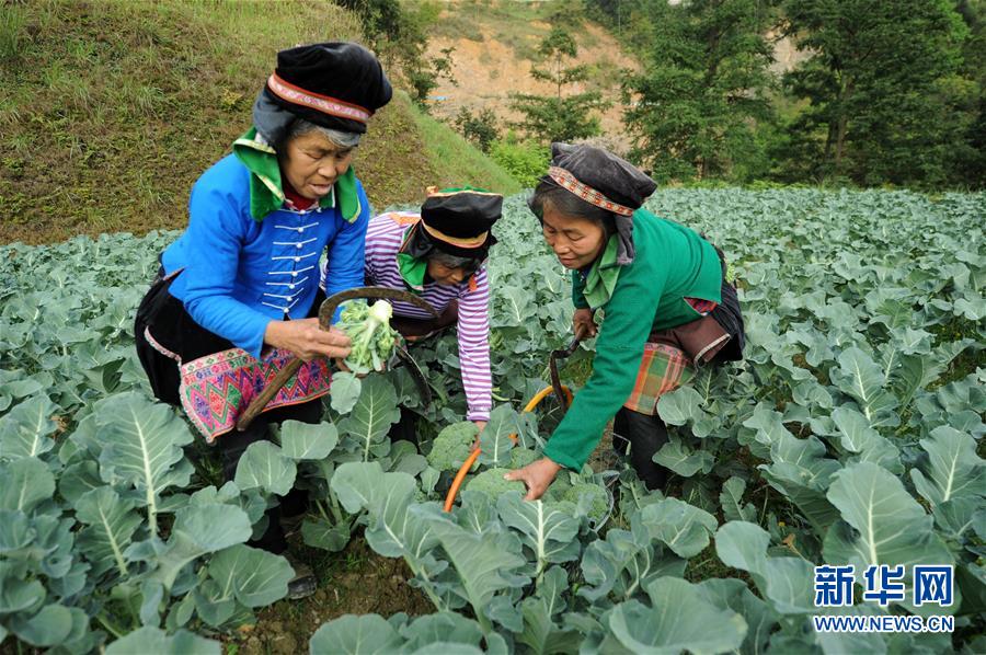 4月8日,排调镇党早村村民在蔬菜种植基地里收获西兰花。 新华社发(杨文斌 摄)