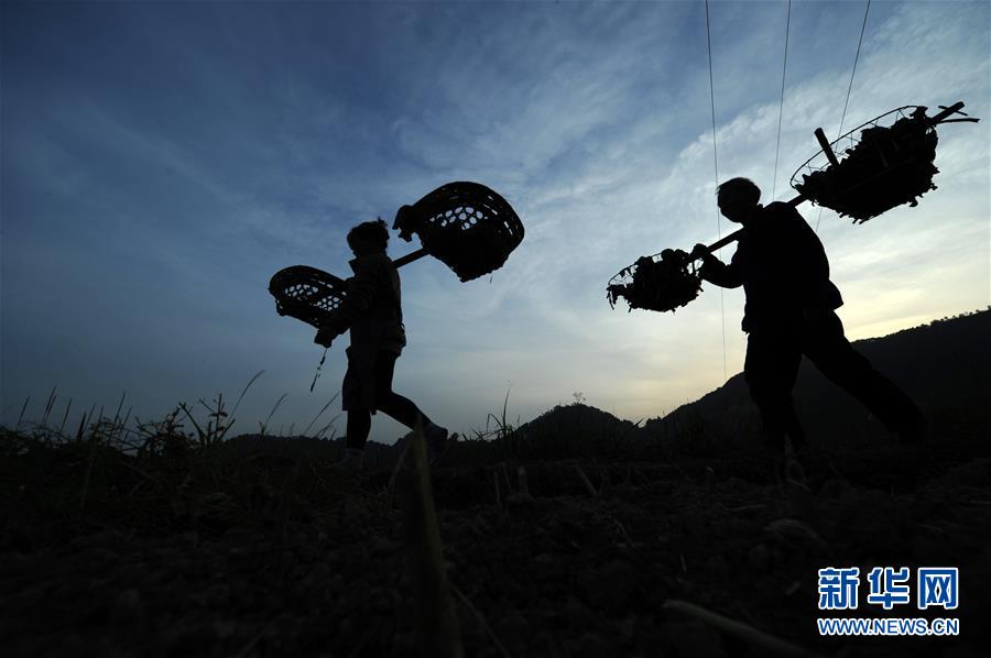 4月8日,排调镇党早村村民从蔬菜种植示范基地劳作归来。 新华社发(杨文斌 摄)