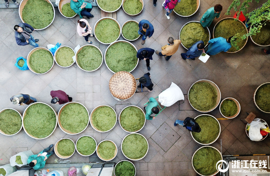 4月10日,位于浙江新昌的中国茶市迎来春茶销售旺季,全国各地茶商纷至沓来。