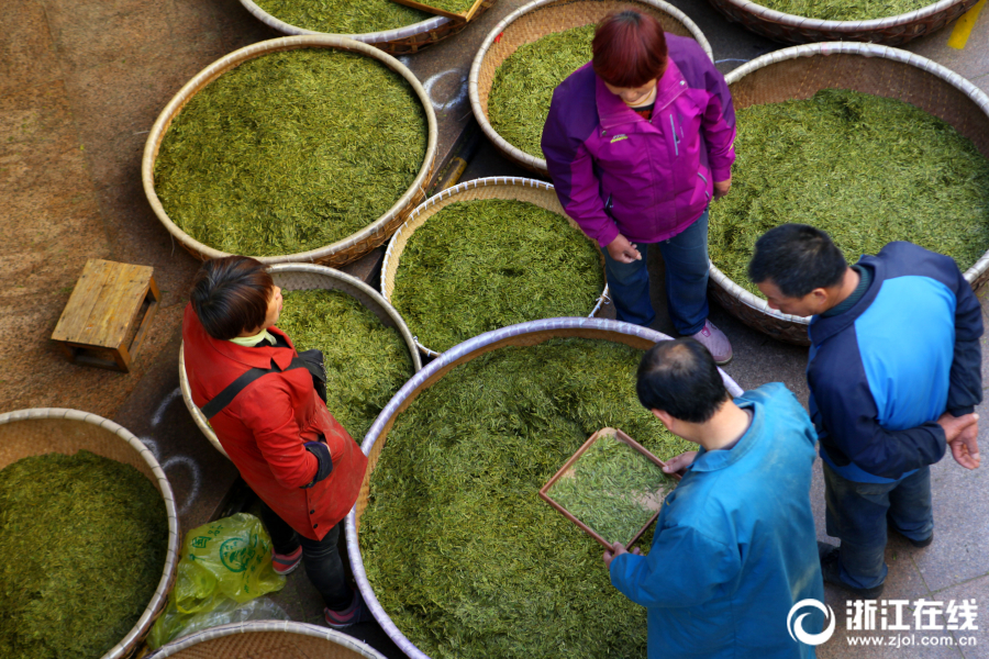 4月10日,位于浙江新昌的中国茶市迎来春茶销售旺季,全国各地茶商纷至沓来。