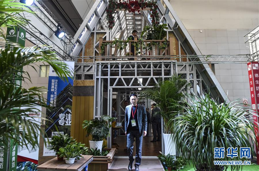 4月13日,参观者在博览会上参观装配式建筑。当日,新疆国际绿色建筑产业博览会在新疆国际会展中心开幕。来自全国各地的800余家企业参展。 新华社记者 王菲 摄