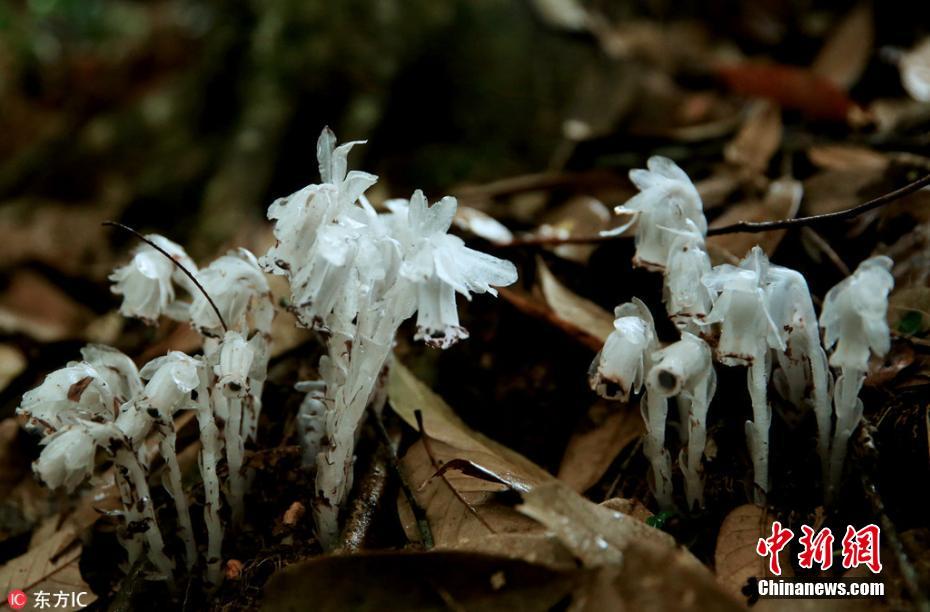 湖南桂东现“幽灵之花”水晶兰 晶莹剔透