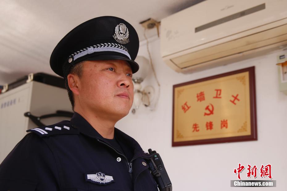 4月8日,聂建春在岗位上执勤。 中新社记者 韩海丹 摄