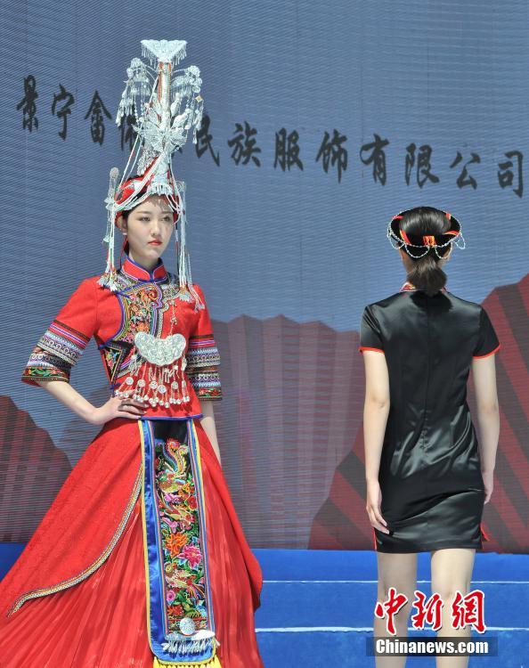 4月18日,模特展示民族风头饰。当日,浙江景宁举办了一场以“视界畲乡”为主题的畲族服饰设计展演活动。中新社记者 张茵 摄