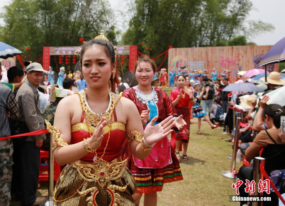 东盟国家留学生参加“壮族三月三”演出互动。曾开宏 摄