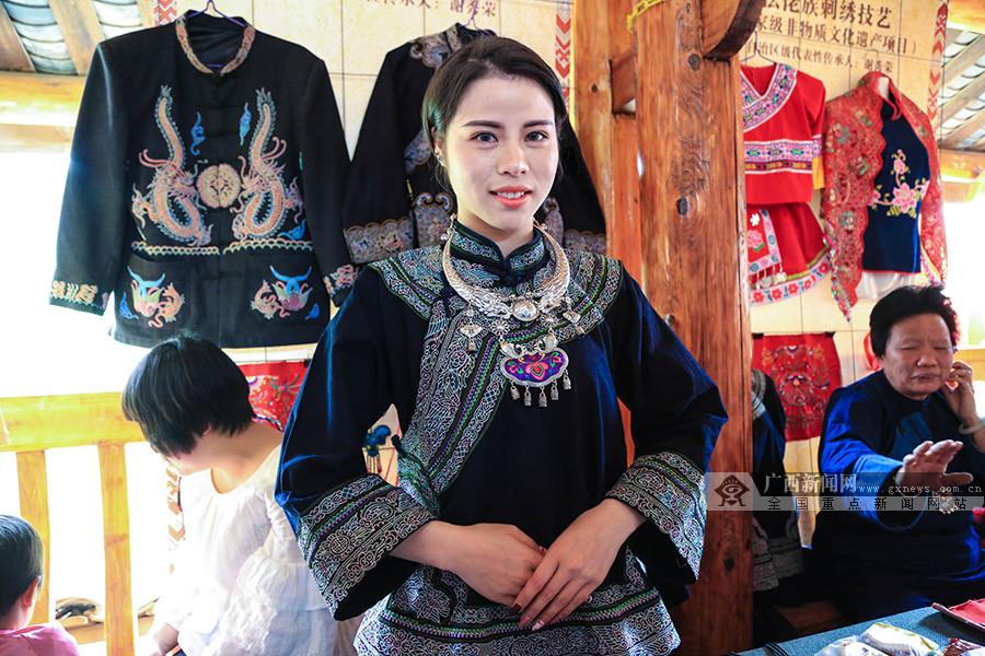 仫佬族服饰,低调却不失优雅。广西新闻网记者 廖志荣 摄