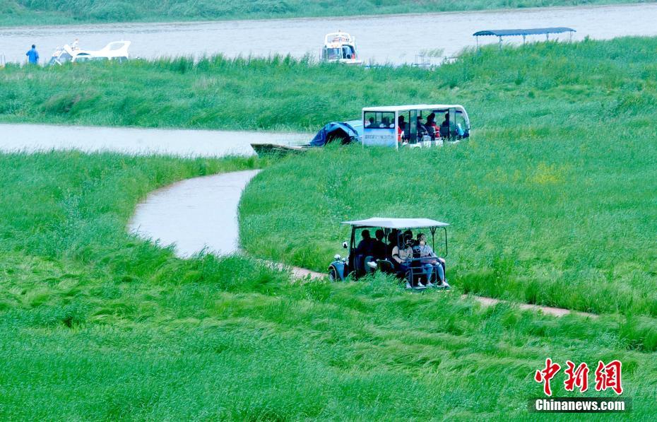 游客行驶在水上公路,不仅可欣赏到美丽的“江南大草原”景观,同时还可体验到魅力生态、绿色环保鄱阳湖的美丽,被人们誉为最美“水上公路”。 卓忠伟 摄