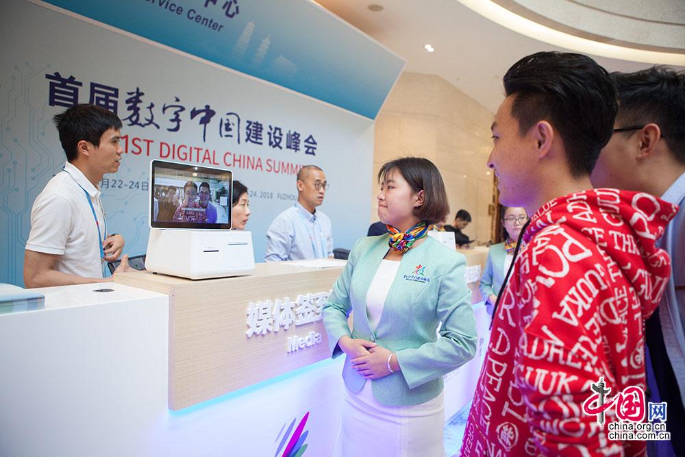 4月21日,媒体记者“刷脸”签到。中国网记者 伦晓璇 摄