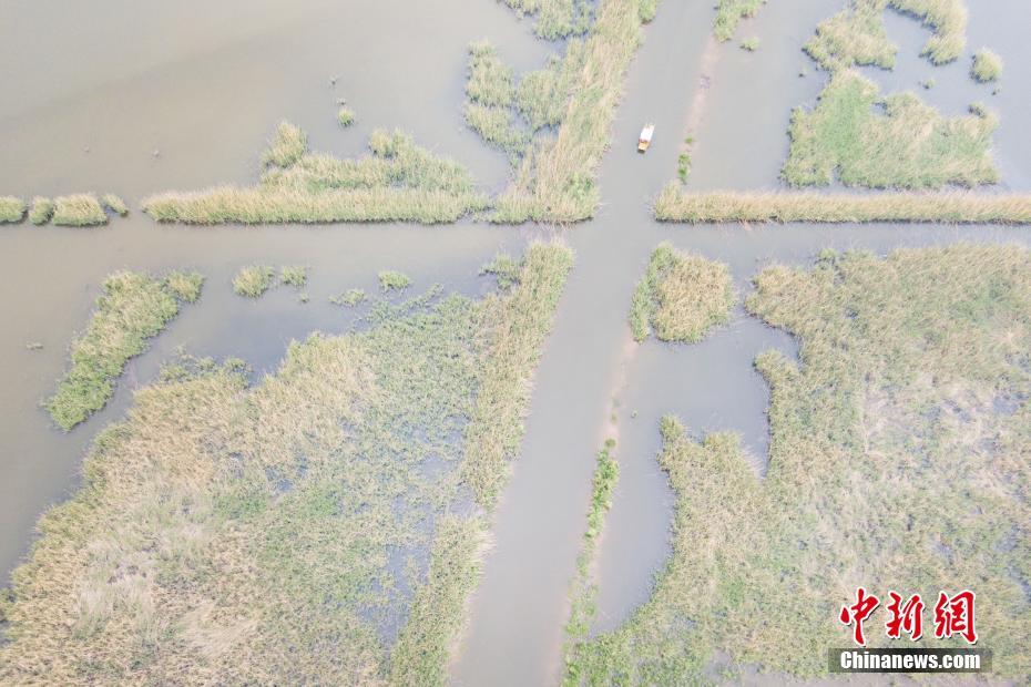航拍江苏高邮湖 “芦苇迷宫”醉游人