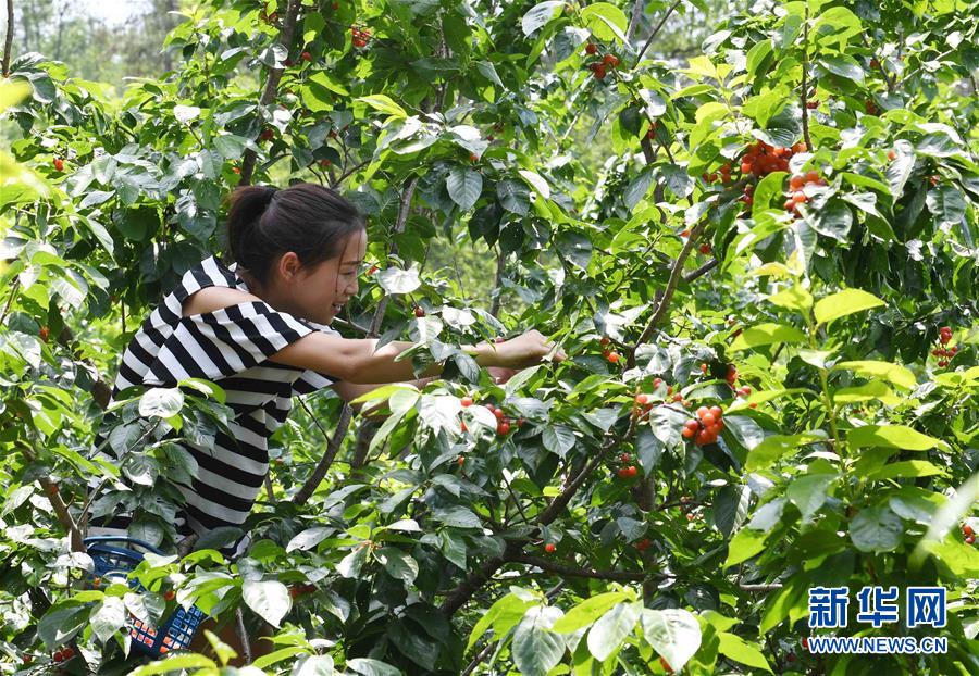 4月25日,游客在富民县赤鹫镇普桥村的果园里采摘樱桃。近年来,云南省富民县赤鹫镇积极调整农业产业结构,大力发展特色林果种植业,带动乡村旅游发展,实现农户增收的同时,辖区内森林覆盖率不断提高。目前全镇特色林果种植面积超过15800亩。新华社记者 杨宗友 摄