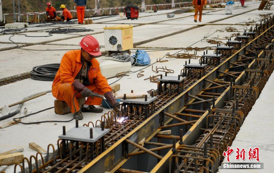 工人师傅正在兴康特大桥上进行焊接作业。 中新社记者 刘忠俊 摄