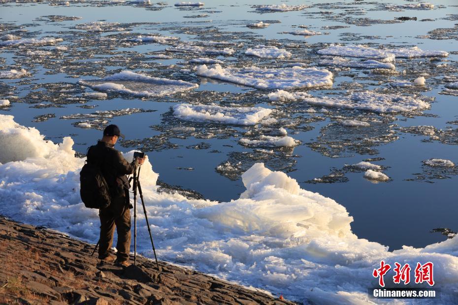近日,伴随气温快速回升,黑龙江呼玛县江段进入流冰期,壮观的跑冰排盛景吸引了游客前来观赏。中新社记者 于琨 摄