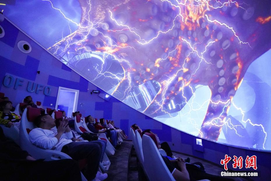4月29日,贵州双龙航空港经济区首个科幻主题乐园“东方科幻谷”正式对外试运营,利用VR、AR等科技,结合过山车、轨道车、球幕等游艺设备,为游客呈现来自“未来世界”的新鲜体验。图为球幕影院。中新社记者 贺俊怡 摄