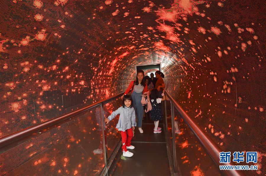 4月29日,在福建省科技馆,小朋友在家长陪护下体验飞行员眩晕适应课目。当日是“五一”小长假第一天,人们以各种方式放松心情,欢度假期。 新华社记者 宋为伟 摄