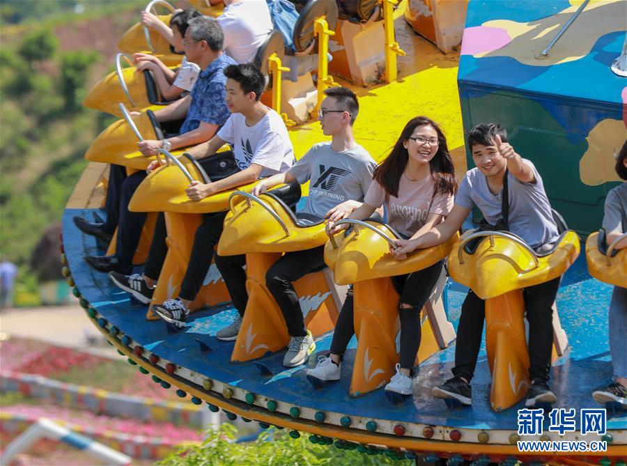 4月29日,游客在重庆涪陵区红酒小镇游玩。当日是“五一”小长假第一天,人们以各种方式放松心情,欢度假期。 新华社记者 刘潺 摄