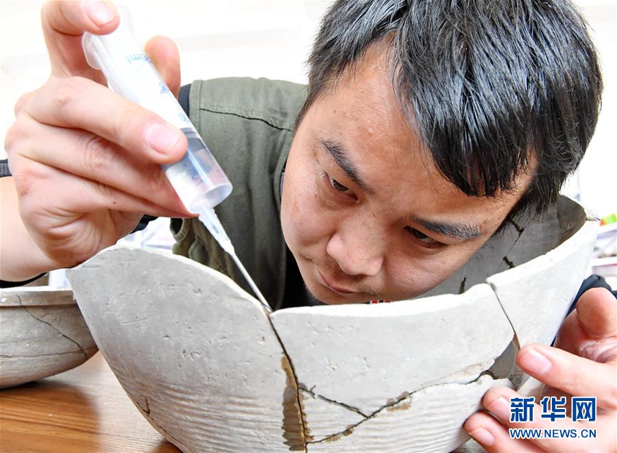 4月26日,考古工作者王刚在修复南阳遗址出土的文物。一个新城要立得住,须传承好文脉,注重对历史文物和历史风貌的保护。雄安新区在规划建设中对这一点格外看重。 29岁的王刚是河北雄安新区文物保护与考古工作站的一员,在容城县晾马台镇南阳村从事南阳遗址的考古发掘已有近一个月的时间。春季常有风沙,沙土直往鼻腔和嘴里钻,考古队员们每天都要在田间垄头蹲10多个小时。从探方到修复室再到宿舍,三点一线的生活枯燥乏味,但在王刚心里,“能把所学专业与新区建设结合在一起,是一种幸福”。像王刚一样数以百计的考古工作者,用他们的专注与坚守,为雄安新区文化遗产的保护奉献着自己的年华。 新华社记者 牟宇 摄