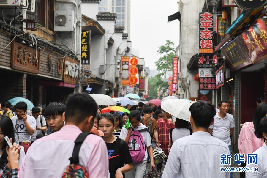 4月29日,游客在湖南长沙太平老街游玩。当日是“五一”小长假第一天,人们以各种方式放松心情,欢度假期。 新华社发(张笑宇 摄)