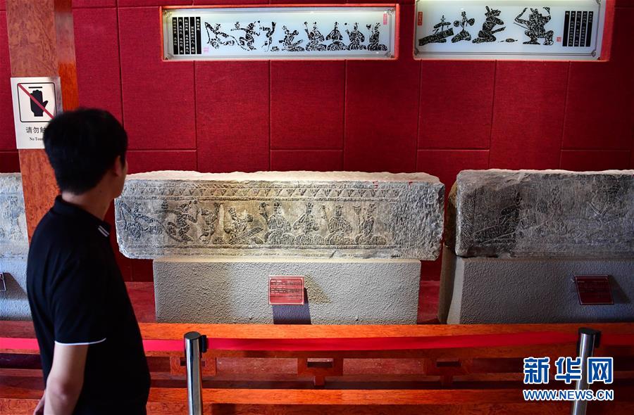 4月29日,游客在河南南阳汉画馆欣赏汉画像石。当日是“五一”小长假第一天,人们以各种方式放松心情,欢度假期。 新华社记者 冯大鹏 摄